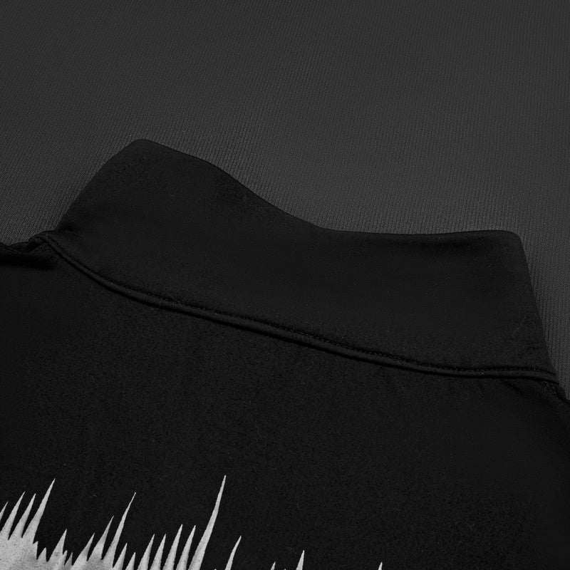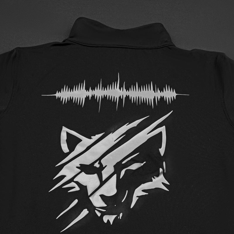 The back graphic — a fierce wolf head with waveform detailing — encodes Apexwolf’s message of discipline through control. Whether it’s an early-morning lift or cold-weather run, this piece keeps your movement streamlined, your focus locked.