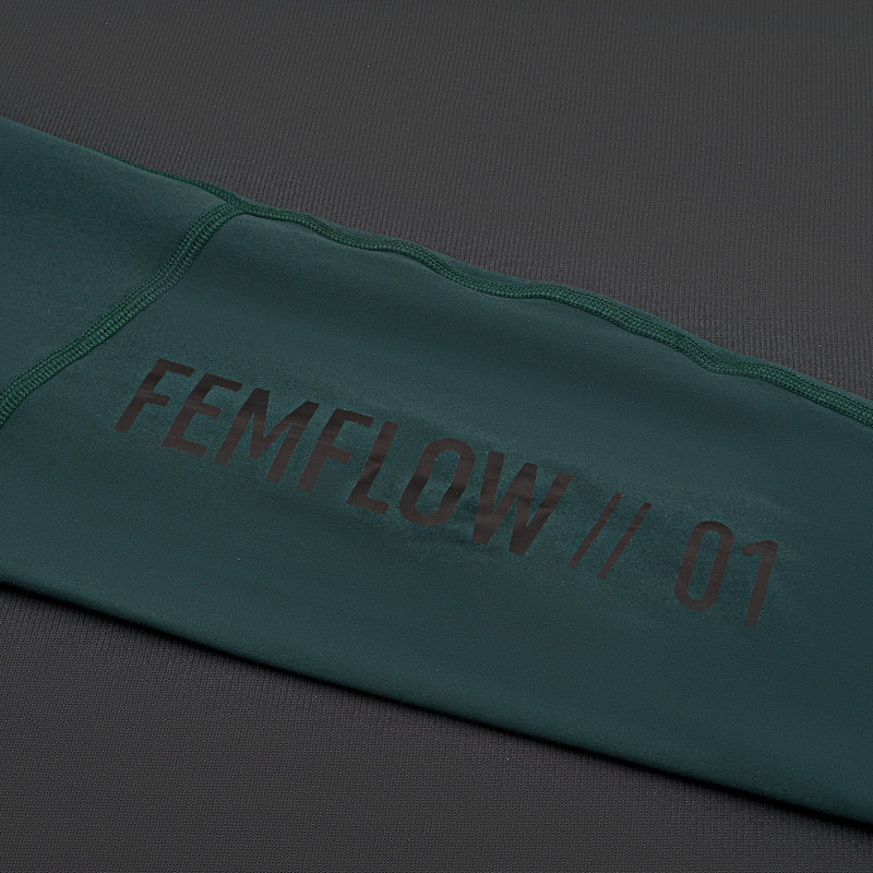 • 🔠 “FEMFLOW // 01” vinyl print on lower leg