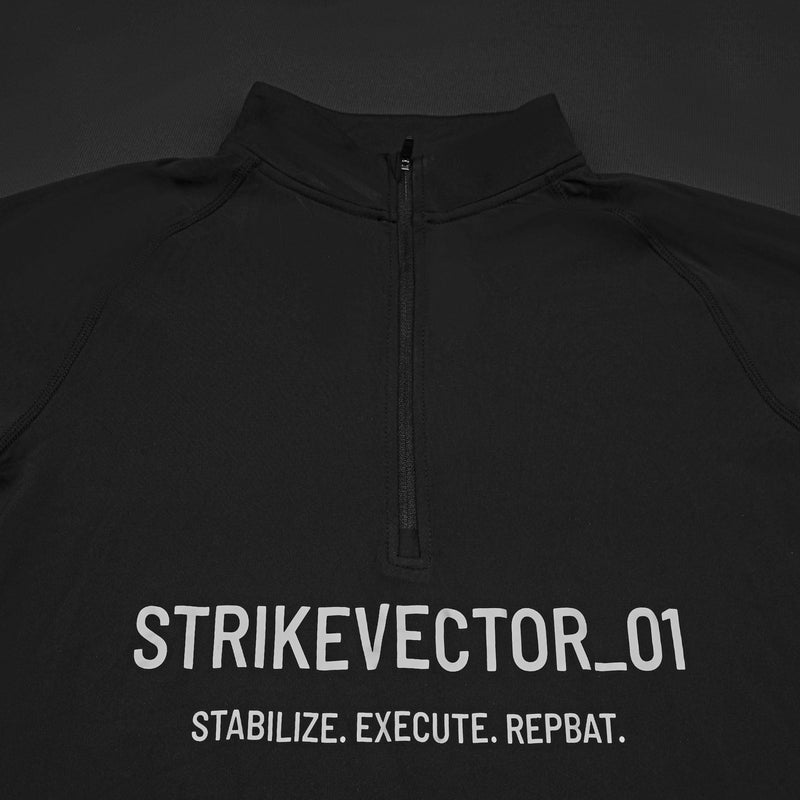 Precision meets performance in the STRIKEVECTOR_01 — a high-intensity training top built for operators who move with intent. Crafted from an 85% polyester / 15% elastane performance blend, it offers an aerodynamic stretch fit that stabilizes under pressure and cools under motion.